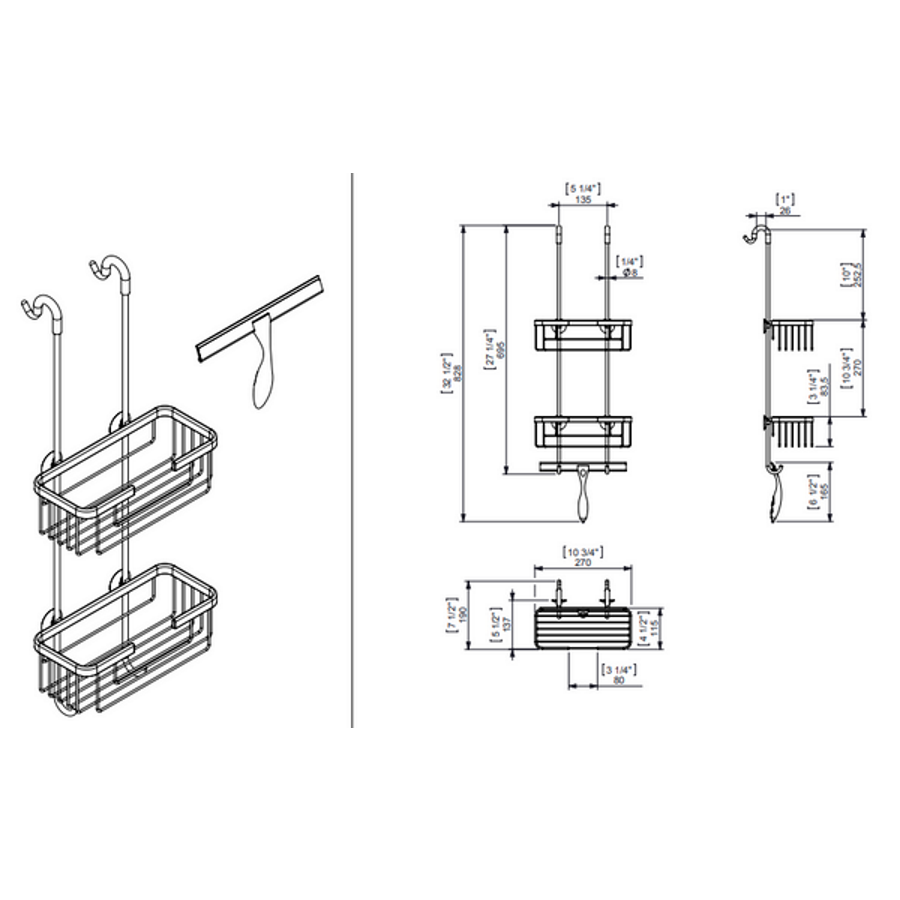 Doucherek Jabon 2 laags chroom, breedte 27cm, diepte 19cm, hoogte 69,5cm. Door de uitsparingen in de onderzijde blijft er geen water in staan.