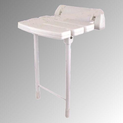 Opklapbare douchestoel van wit gelakt aluminium met een hygiënische zitting in wit van hypo-allergeen ABS en opklapbare poten voor optimale veiligheid. Speciaal geschikt voor wanden of muren van gipsblokken, gipsplaten of systeemwanden. Deze douchestoel heeft een maximale belasting van 160kg, zithoogte 49,5cm. De aluminium montageplaat maakt het zeer eenvoudig om deze douchestoel aan de muur te bevestigen. Levering inclusief schroeven en pluggen.