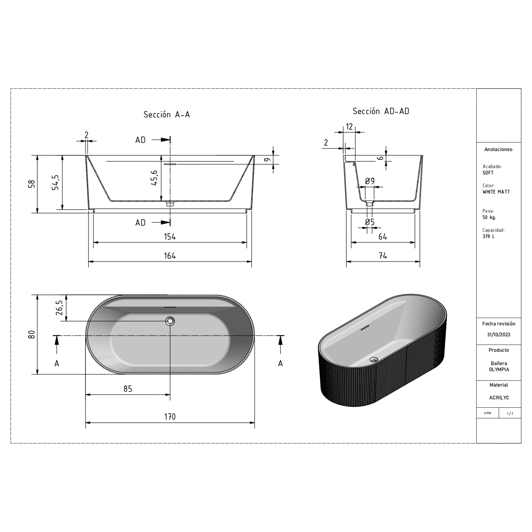 De perfecte afmetingen van 80x170 cm en een hoogte van 58 cm zorgen voor een ruim en comfortabel bad waarin je volledig kunt genieten van ontspanning. De zorgvuldig vormgegeven contouren bieden optimale ondersteuning, terwijl de witte matte afwerking een tijdloze en moderne uitstraling geeft aan je badruimte.