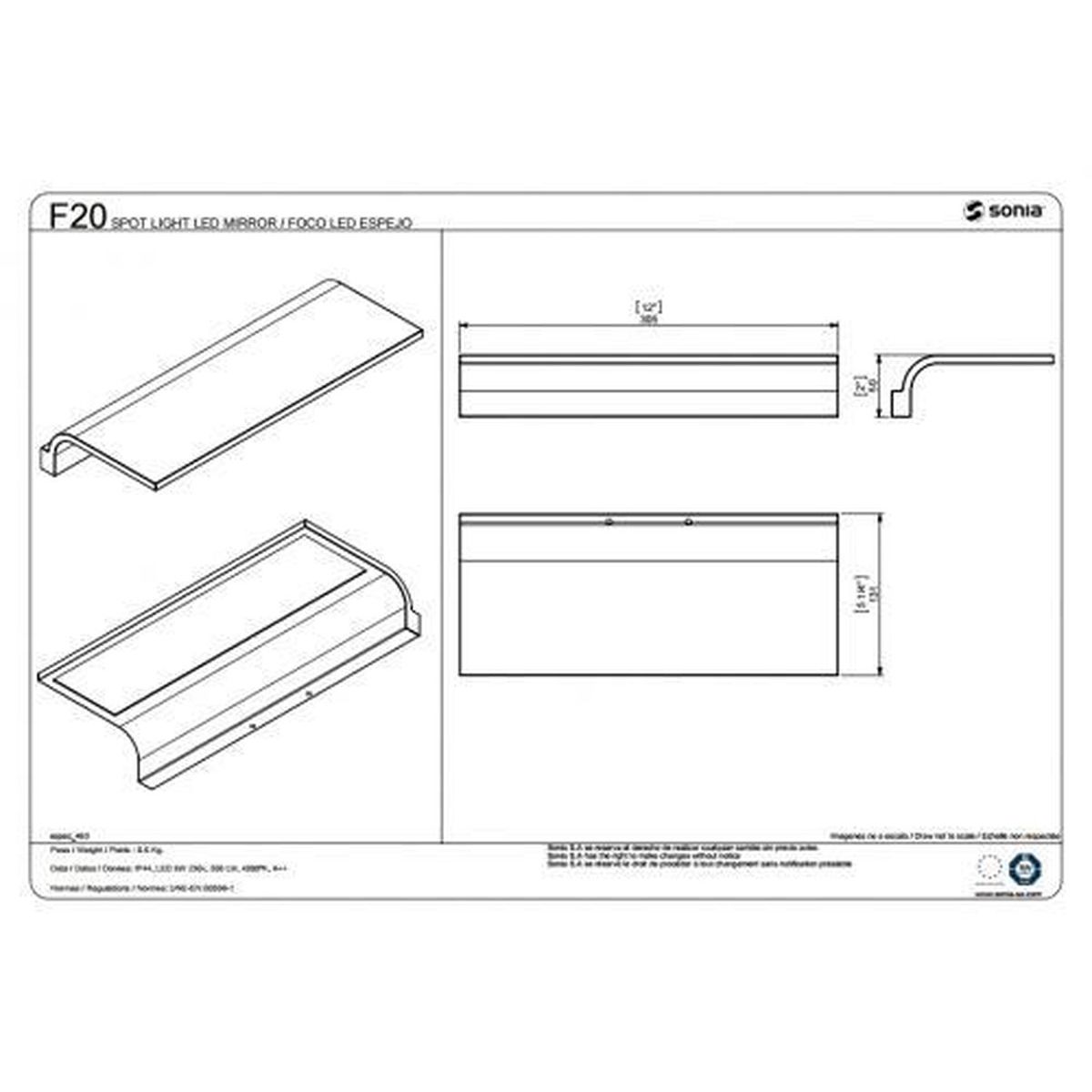 Design LED spiegelverlichting F 20 wit, 350L, lichtkleur 4000K