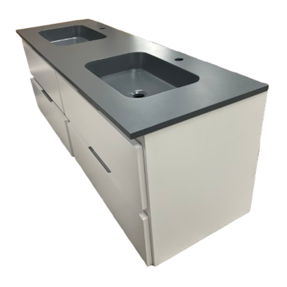 Dubbel badmeubel Life 150cm mat wit met composiet wastafel Cementgrijs RAL7033