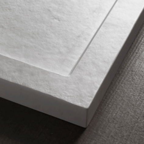 Platte douchebak op maat met rand Stone is gemaakt van composietsteen en slechts 3,5cm hoog. Leverbaar in 6 standaard kleuren en optioneel in iedere RAL of NCS-kleur naar keuze. Inclusief vierkant RVS gepolijst afvoerrooster, sifon met zeefje en standaard voorzien van afschot.