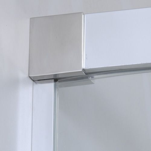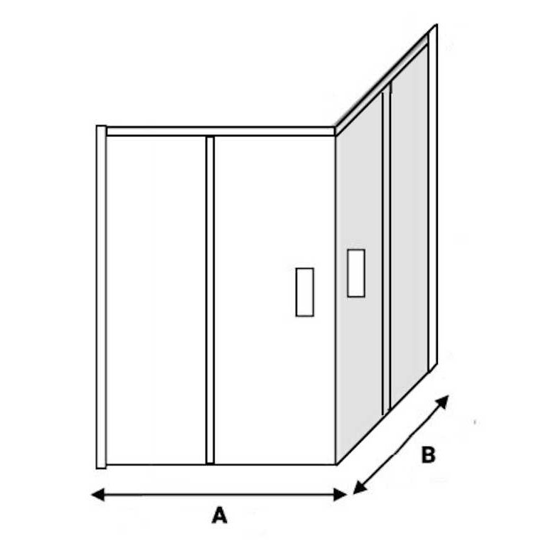 Hoekinstap Cosmo van 6 mm veiligheidsglas met schuifdeuren, magneetsluiting en vuil- en waterafstotende anti-kalk oppervlaktebehandeling. Standaard hoogte 195cm, maximale hoogte 220cm