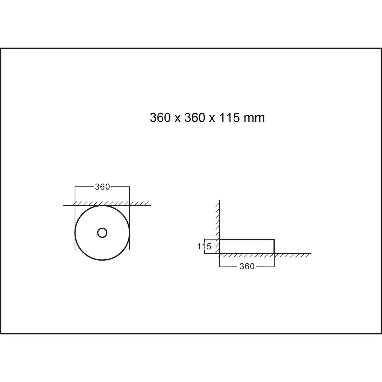 Keramische ronde opbouw waskom Calacatta ø36cm wit marmer met grijze ader, hoogte 12cm. Voorzien van standaard afvoergat diameter 46mm.