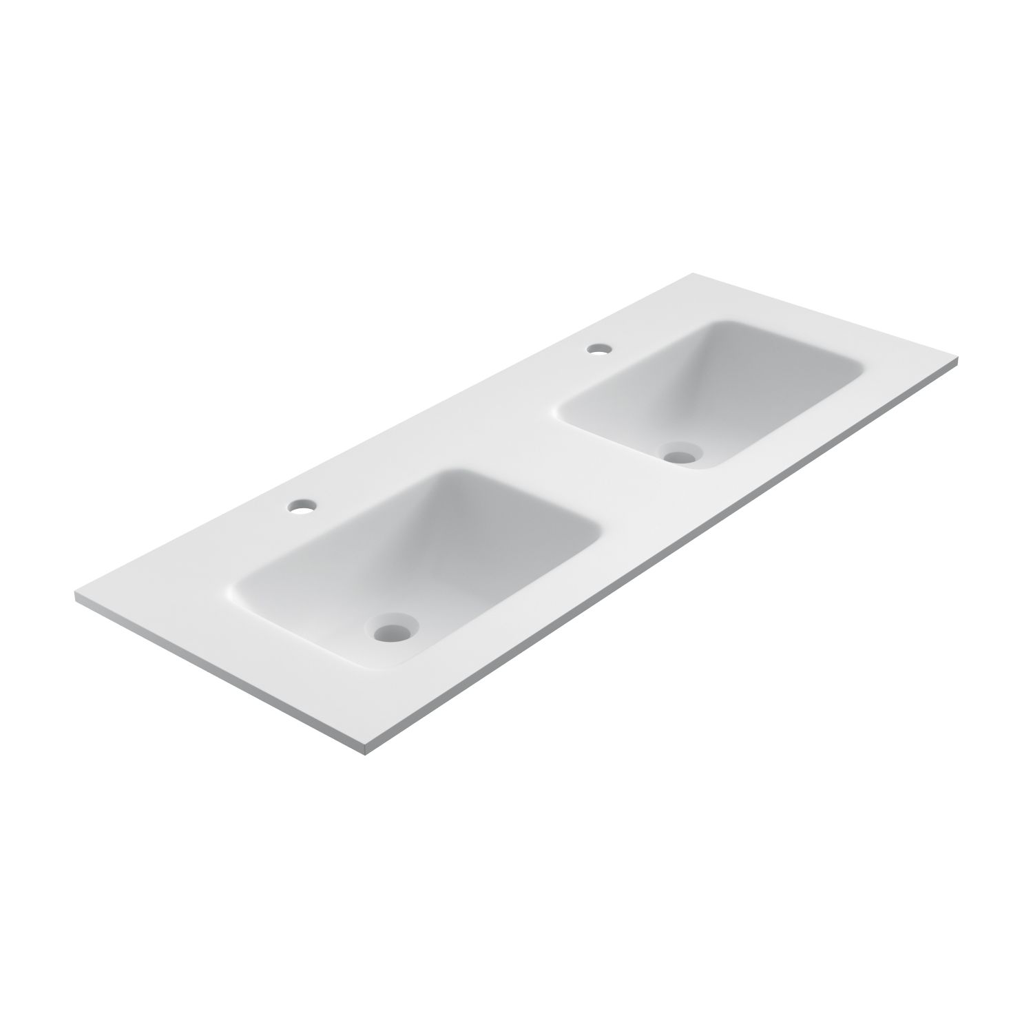 Solid Surface dubbele wastafel Florence 121x46cm mat wit